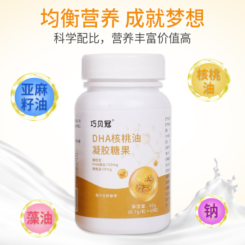 源头厂家巧贝冠DHA核桃油60粒直播凝胶糖果一件代发贴 牌OEM代加工