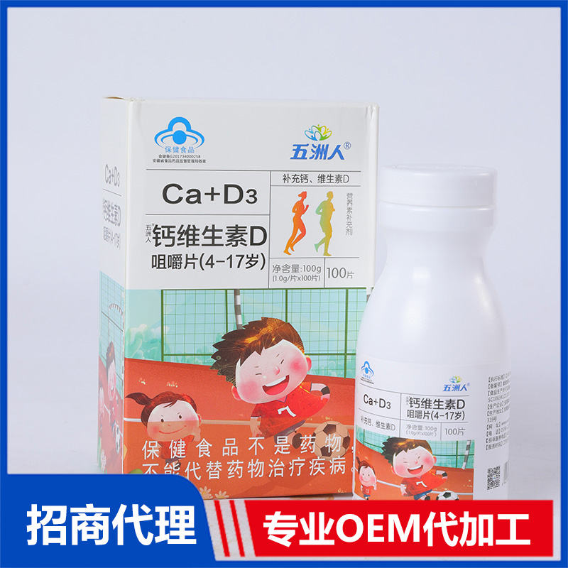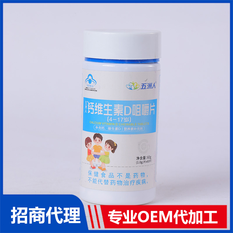 五洲人钙维生素D咀嚼片(4-17岁)OEM代加工