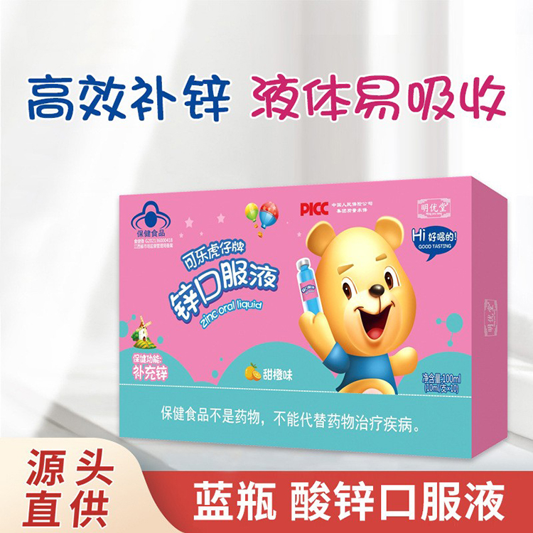 葡萄糖酸锌口服液源头厂家直供 蓝帽蓝瓶锌口服液代理批发