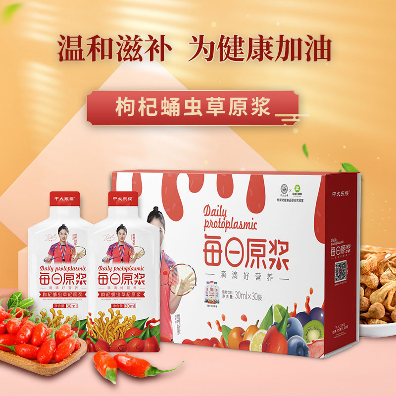 每日蛹虫草枸杞原浆果蔬汁植物饮料鲜榨云南蛹虫草宁夏红枸杞原液OEM代加工