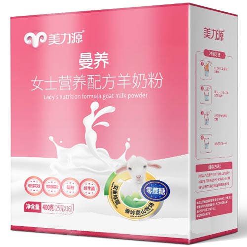 产品成分:生羊乳、矿物质、维生素,特别添加叶酸、左旋肉碱、膳食纤维等营养素