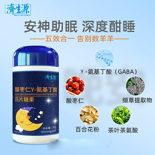 产品成分:γ-氨基丁酸、酸枣仁粉、缬草根提取物、百合粉、茶叶茶氨酸