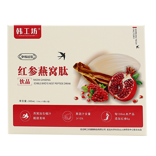 产品成分:水、红参(人工种植,5年生)、燕窝、石榴浓缩汁、桑椹、枸杞、重瓣红玫 瑰、柠檬酸、山梨酸钾