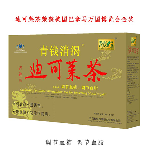 公司研制的以青钱柳叶为主要原料制作的降糖神茶(现更名为青钱牌迪可莱茶)、降压神茶(现更名为青钱牌普莱雪茶)和减肥神茶(现更名为俏格格牌素丽美茶)三个保健食品均获卫生部颁发的保健食品证书,并已开发十余款青钱神茶系列产品,产品远销欧美、日本、韩国、俄罗斯、南非、西非等国家,深受海内外消费者的青睐! 新近,公司联合中国科学院生物物理研究所,从细胞分子水平寻找青钱柳和青钱柳降糖茶的有效部位和作用机理。研究结果发现,青钱柳复方(青钱柳降糖神茶主成分)和青钱柳单方能促进胰岛β细胞增殖能力,而且青钱柳复方比青钱柳单方效果更明显;同时还发现青钱柳复方对脂毒性诱导的胰岛β细胞凋亡具有保护作用。胰岛β细胞增殖能力下降及凋亡增加是导致糖尿病发生的重要病因。 新华社、人民日报、健康报、中国中医药报、新华网、人民网等近百家权威媒体先后对公司进行大量采访报道,受到广大消费者的热烈关注和好评,获得业界广泛认可。