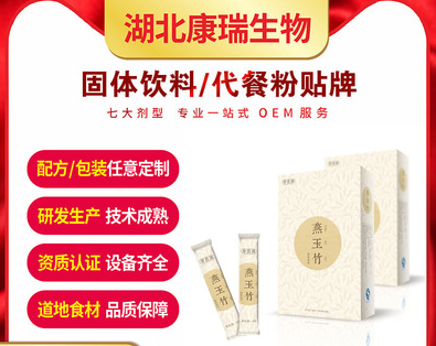 湖北康瑞生物科技有限公司,是一家利用先进生物技术致力于各种健康食品研发、生产、销售于一体的高新技术企业。公司座落于湖北省孝感市长兴路广场工业园,专业提供膏滋/膏方贴牌代加工、代用茶贴牌代加工、固体饮料贴牌代加工、压片糖果贴牌代加工、代餐粉贴牌代加工、丸剂贴牌代加工,产品招商代理等服务。 经过多年的发展,湖北康瑞生物已发展成为覆盖男性健康、女性保养、中老年养生三大产品系列。公司拥有5000平米的GMP标准化洁净厂房,各类食品年产量可达2500多吨,是一家有实力有担当的新型健康食品生产厂家。公司现有员工100多名,其中各类技术人员30多名、高级职称5名、中级职称9名,组建了一支高学历、高职称、经验丰富、管理水平高、创新能力强的管理、营销、科研团队。