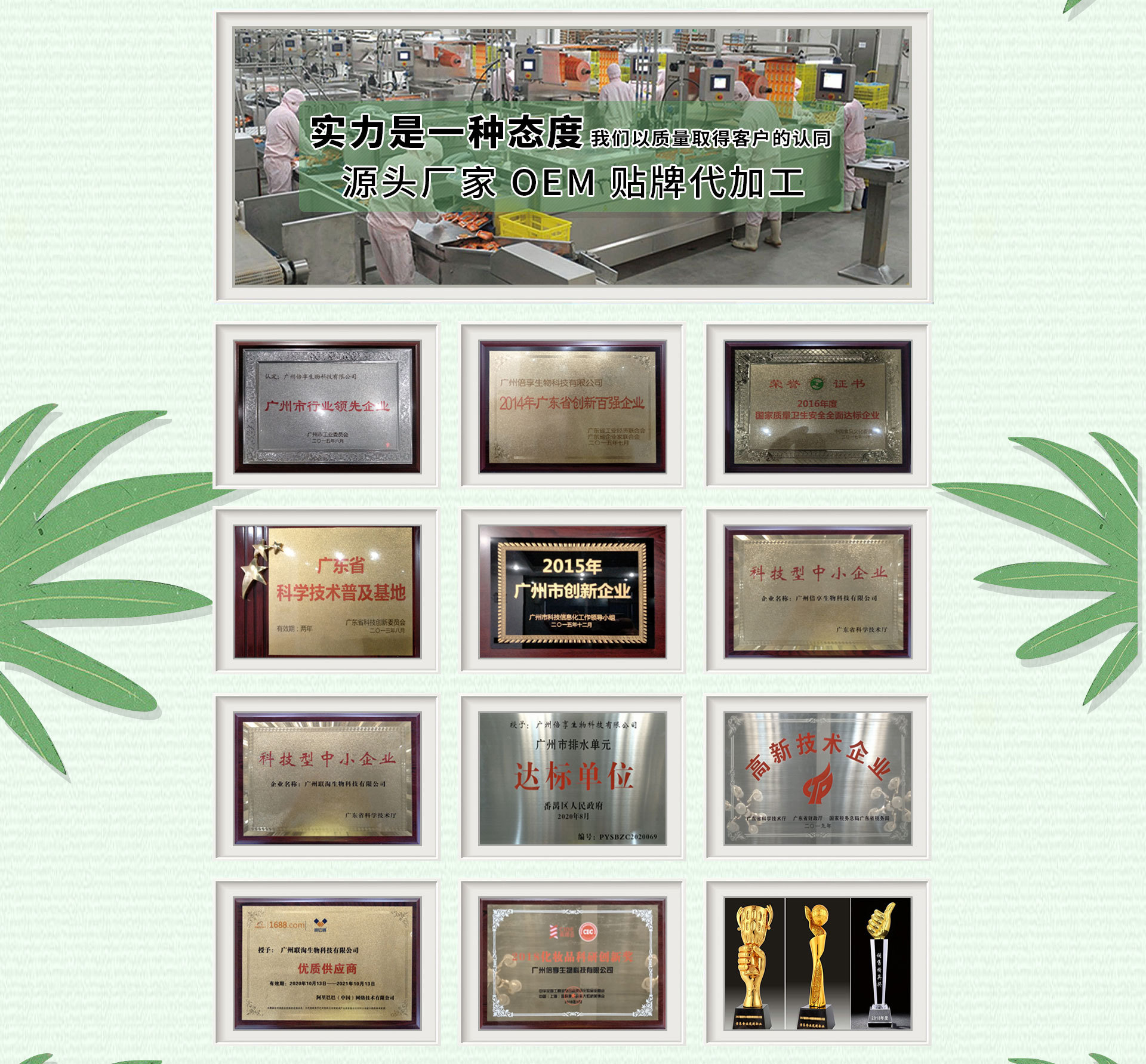 广州联淘生物科技有限公司是广州倍享生物科技有限公司的子公司,是一家专业贴牌加工生产营养食品、保健食品等健康食品的专业厂家。它依托于浙江大学的技术力量,具有强大的产品研发、生产能力。品种包括压片糖果、泡腾片、咀嚼片、含片、口服片、冲饮、代餐粉、奶昔、软糖、胶囊,果冻,固体饮料,各类膏滋、液体饮料,代餐饼,营养棒,饼干等系列产品,具有国际领先水平;我司一直秉承:客户需求,我们得追求!这一原则,凭借科学的管理和先 进技术能力,正朝着打造国内最具有竞争力的健康食品生产商的方向大步迈进!先后与国内外多家知名企业达成友好合作关系,是全国屈臣氏,万宁,各大连锁超市药店的中国区域指定供应商。公司通过了QS,SC,GMP认证,具备完整的产品质量控制和保障体系,我们将以一流的产品、一流的服务,期待与国内外朋友们进行全方位的合作,共同发展。