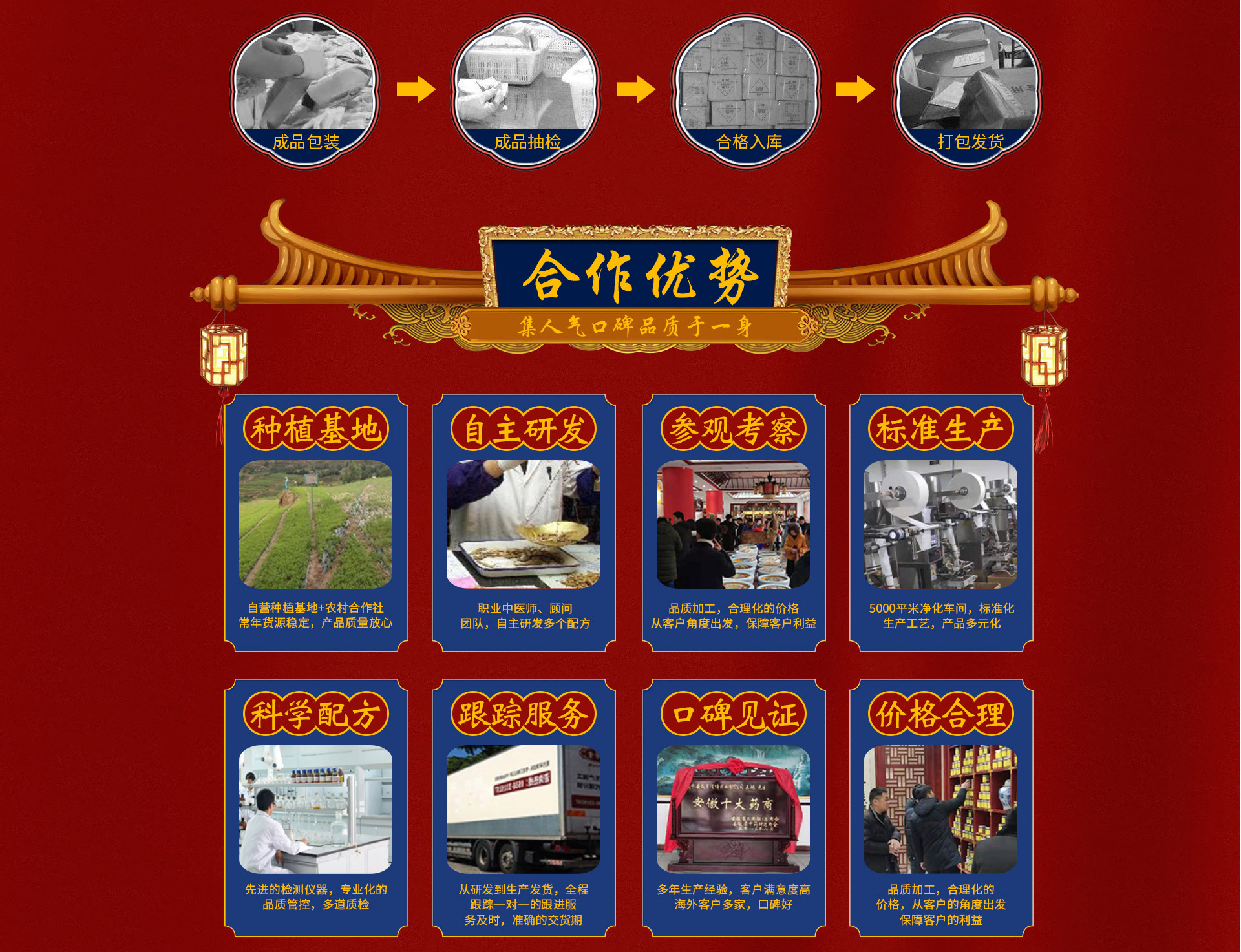 亳州市薏宁堂花茶有限公司是秋梨膏、山楂六物膏、阿胶姜枣膏、黑芝麻丸、八珍膏、四物膏、鹿鞭丸、红豆薏米茶、菊花栀子茶、菊花决明子茶等产品专业生产加工的公司,拥有完整、科学的质量管理体系。亳州市薏宁堂花茶有限公司的诚信、实力和产品质量获得业界的认可。欢迎各界朋友莅临参观、指导和业务洽谈。