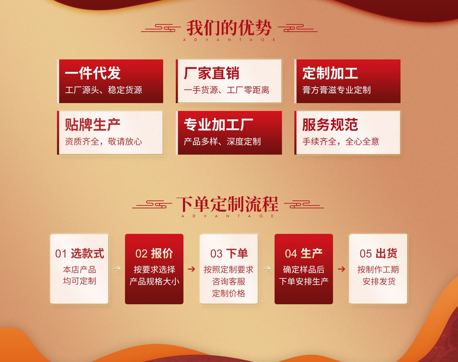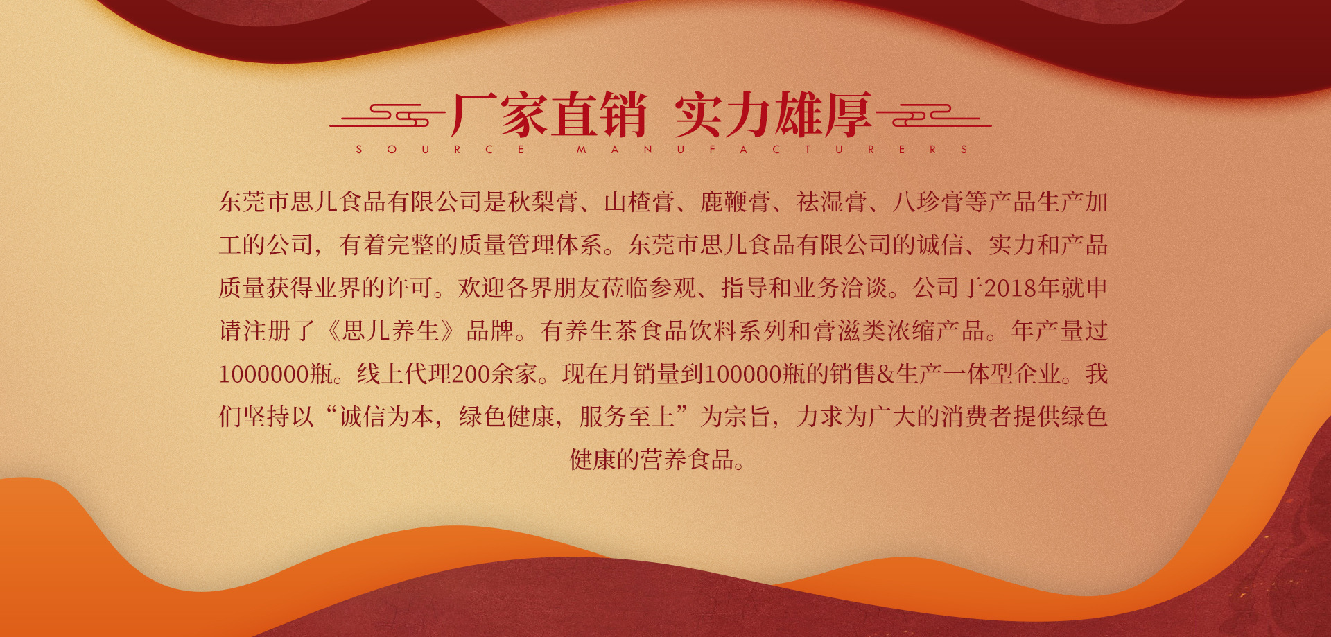 公司主营食品保健,自建工厂,祖传秘方高端私人定制的膏滋深受白领层好评。且凭借以高品质及合理的价格,充分整合微商体系,注重上下游共同开发。与此同时,公司以人为本,时刻秉承先做人后做事的经营理念,不仅拥有完整的生产体系,产品均通过国家权威检测认证。而且具有一定的系统性、团队性。通过共享平台资源,帮助更多年轻人完成创富梦想。