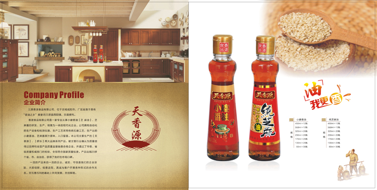 香源食品有限公司是一家从事小磨香油、芝麻油、芝麻酱的研发、生产、销售为一体的现代化企业。公司拥有自动化的生产设备和检测仪器,生产工艺采用传统石磨工艺,生产出的小磨香油、芝麻酱原汁原味,入口留香。本公司主要生产的产品,被主管行业确认为质量信得过品牌和产品质量监督抽查合格企业,并通过了市级、省级质量权威部门的检验,全部符合国家质量标准。产品远销20多个省、市、自治区,获得了良好的市场口碑。