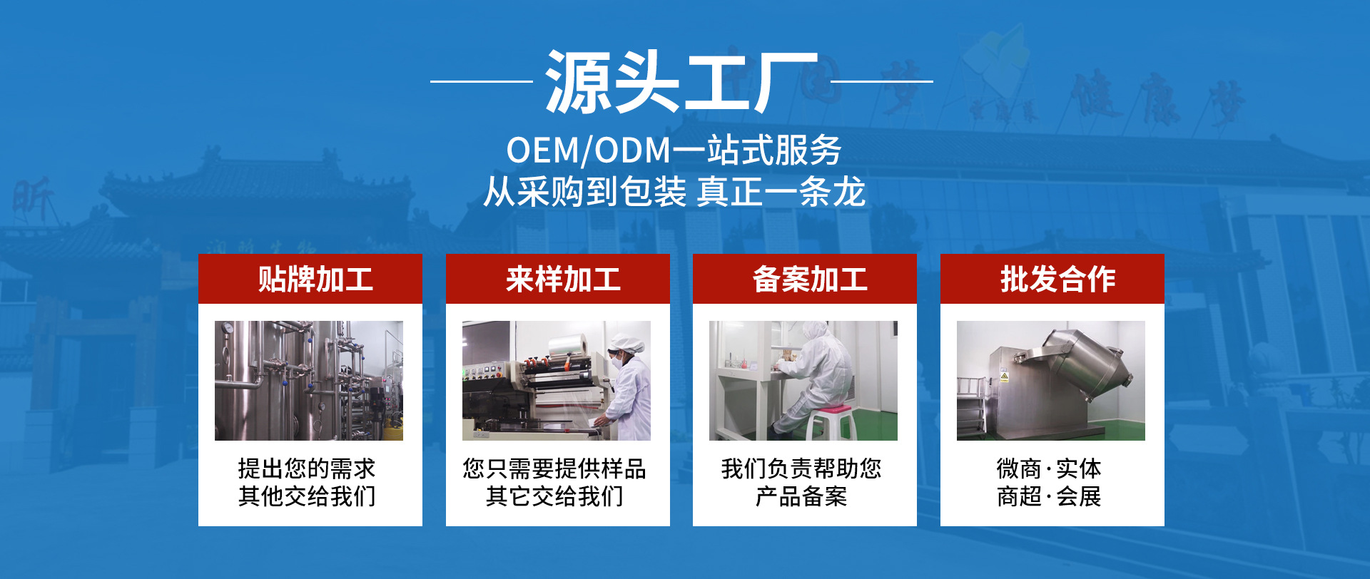 公司目前主要从事保健食品、固体饮料的科研、开发、生产和销售。现已有多个商标产品远销全国各地,并专项成立了一支从事OEM产品开发、生产、服务的专业队伍。