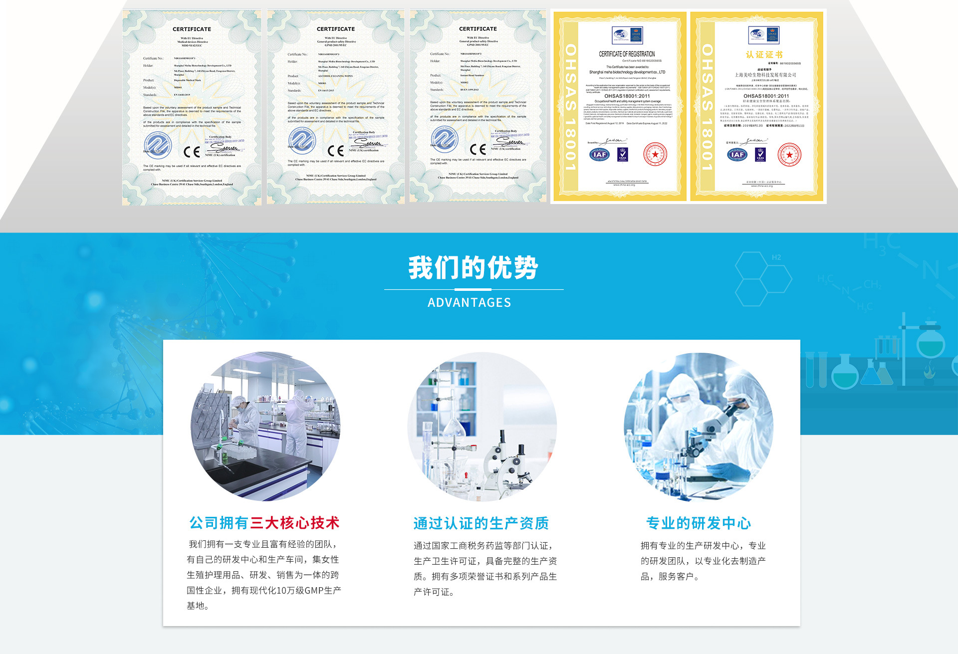 美哈,是信誉和品质的保证,由美哈研制的妇用抗(抑)菌凝胶、妇用抗(抑)菌洗液、妇用紧润内雕丹、妇用缩阴原液、男士功能液 、男士前列腺凝胶、皮肤湿疹止痒喷剂、妇用卫生护垫、蚕丝抗免因子、私处T膜等30余个生殖护理系列和100多个主要产品均采用天然种植的中草药,并运用德国巴斯夫技术、美国陶氏技术以及日本银离子技术从天然草本发酵而成的高纯度芽孢杆菌发酵多肽产物,拥有37种氨基酸可替代抗生素,自集团成立20余年来,美哈集团矢志耕耘于生物医药科技业,开创出独具特色与核心竞争力的企业模式,拥有多名博士、研究生、本科生在内的生物医药科技专业技术团队,同时与多家知名高校合作共同成立科研课题研发小组,其中包括南中医大、上海交大、上海复旦、上海同济、各建有2个万级研发室,完全具备独立理化实验与配方研发实力。