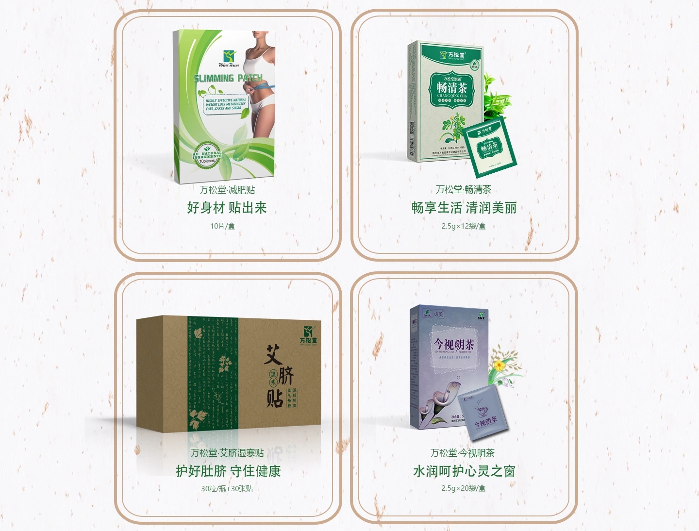 随州万松电子商务有限公司是万松堂集团下分公司。公司地处中国湖北随州,同时拥有保健茶,袋泡茶,花草茶研发、生产、销售、外贸出口、OEM、及代餐粉,固体饮料,肚脐贴,戒烟液戒烟香,膏滋,深加工项目。 OEM合作: 达成需求:1.客户可用您的品牌来加工! 2.可按您的意向样品来加工! 3.可按您的要求配方来加工! 4.可按您的主原料我来加工! 5.可用您的外包装我来灌装加工!等 方案:1.按客户品牌产品定位和要求打样板,确定产品配方! 2.提供三证(营业执照、经营许可证、生产许可证) 3.协助客户产品送检; 4.帮助客户调整品牌产品结构; 5.提供有偿增值服务项目供客户选择。