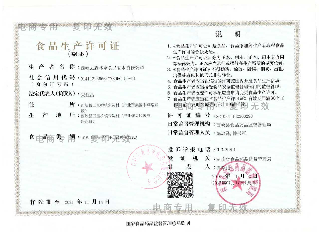 美味原生态,源自森林家!西峡森林家食品有限责任公司成立于2013年10月,位于河南省十强产业集聚区之一的西峡食品工业园。主要涉及食用菌深加工、干果干货鲜果、酒水饮料茶、国际贸易电商物流4大板块业务。是河南省农业和林业产业化重点龙头企业,产品手撕香菇荣获中部七省旅游产品金奖、汉江流域优质农产品、南阳市优秀农产品等。