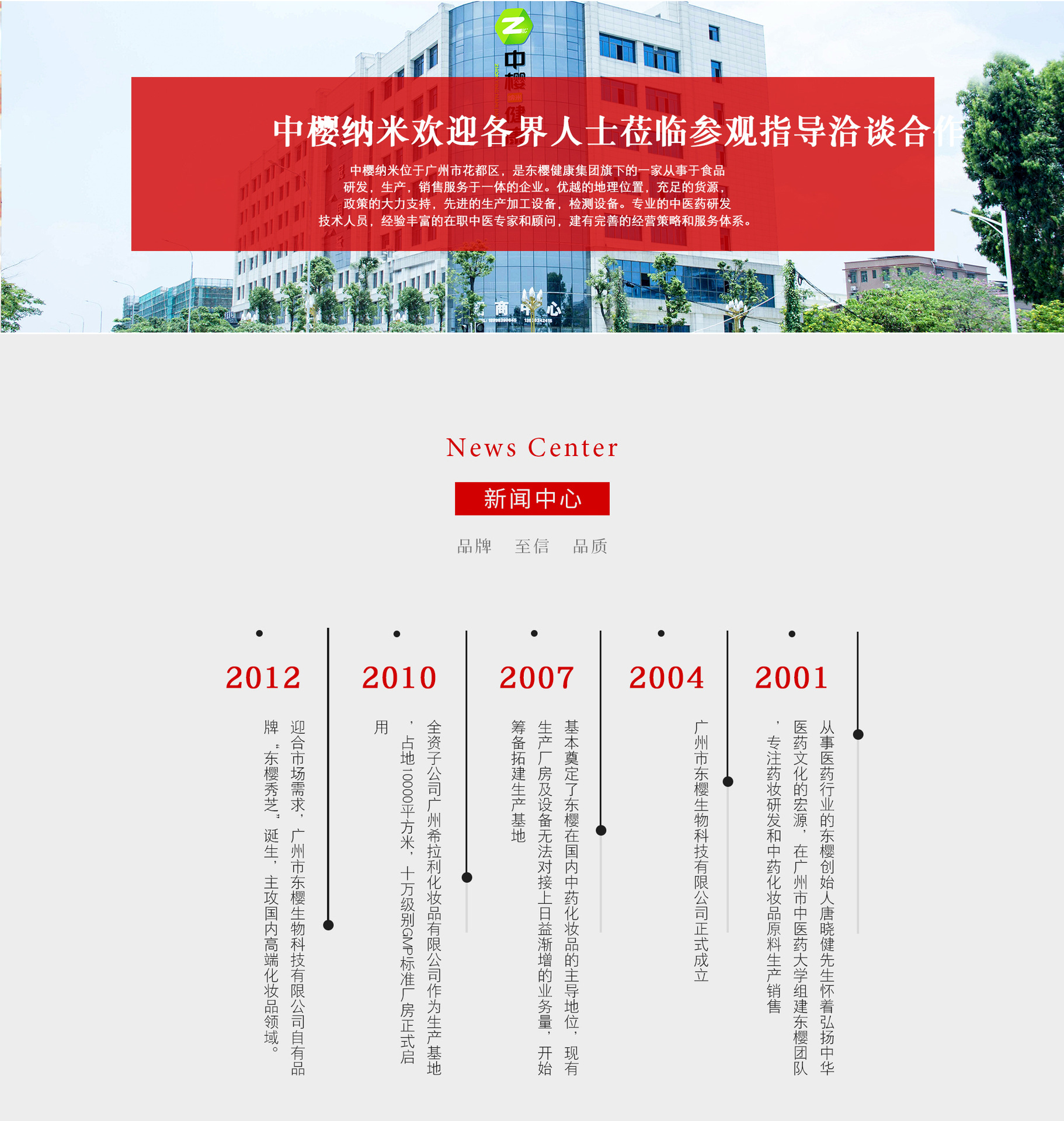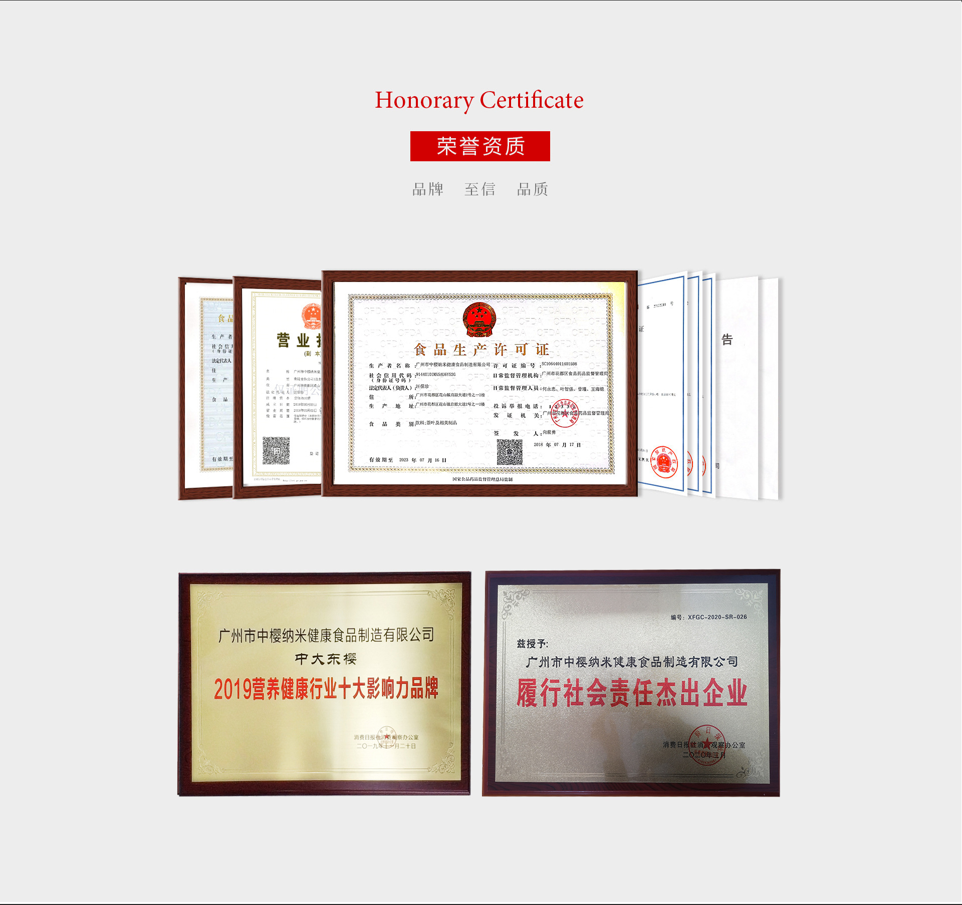 广州市中樱纳米健康食品制造有限公司成立于2018年5月,是一家国内首创、独家运用纳米技术在食品领域专注于美容健康食品的高新技术制造企业。公司拥有生产面积4000多平方米,2500平米10万级洁净无尘生产车间和国际标准实验室。拥有八条国际水准的自动化生产线,年规划产能达5亿以上。 中樱纳米致力于服务广大女性消费者的美容养生健康需求,运用前沿革新式纳米技术,采用国际领先水平的纳米设备与检测仪器,通过食品细度纳米乳化工艺,改变食品微粒状态下的呈现结构,极大的增加食品的吸收率,加快营养成分在体内的运输,并一定程度延长食品的保质期。 养生领域的膏方食品,已历经源远流长的历史传承,中樱纳米首创纳米固元膏、纳米乌鸡白凤膏等系列纳米膏方食品,在保证膏方成分、味道的经典传承以外,其吸收率比普通膏方增加3倍以上。中樱纳米膏系列食品,一勺顶三勺,是传统膏方功效得到高能发挥的革新式创举。