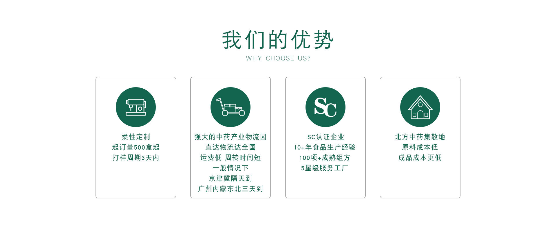 河北百草华荣生物科技有限公司,立于享有“千年药都”之称的河北省安国市中心位置,是一家多元素的养生食品研发及生产的综合型公司。企业以研发为主,诚信为本的宗旨,经营科学养生这一理念而致力于人类的健康与养生行业。百草华荣生物科技旗下产品在市场上名列前茅,从品质到服务都得到消费者一致好评。 公司拥有两处自有工厂,生产工厂综合面积4000平米,另在东北地区建有子公司-沈阳百草华荣生物科技有限公司。我们充分按照国家标准实施运作,通过生产许可证(SC)质量体系认证。目前我公司拥有多种欧美标准国内领先的袋泡茶、方便食品、压片糖果、外用洗浴用品及蜂产品制品,粉碎、粉筛、烘干、灭菌、制粒、制袋等,拥有市场最先进和最快捷的全线承接OEM出口加工业务,完善科学的质量管理体系。 请选择我们,因为品牌需要品牌来塑造。
