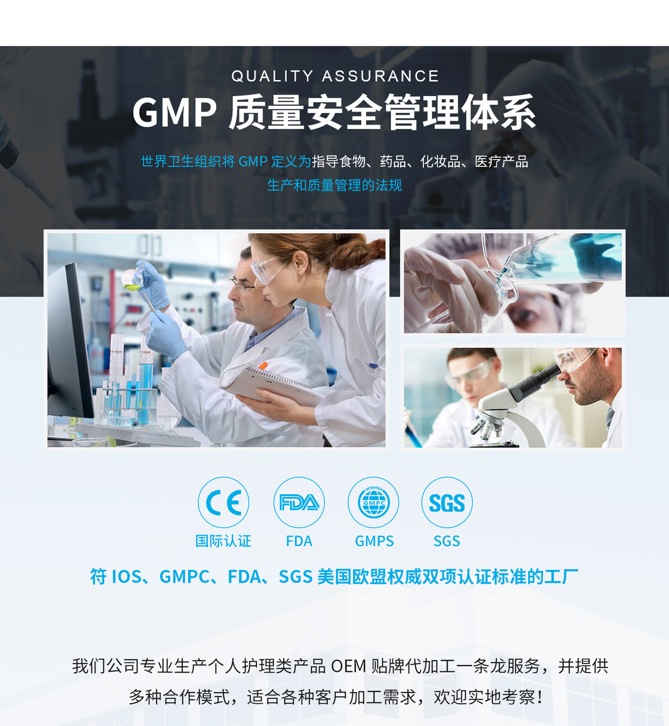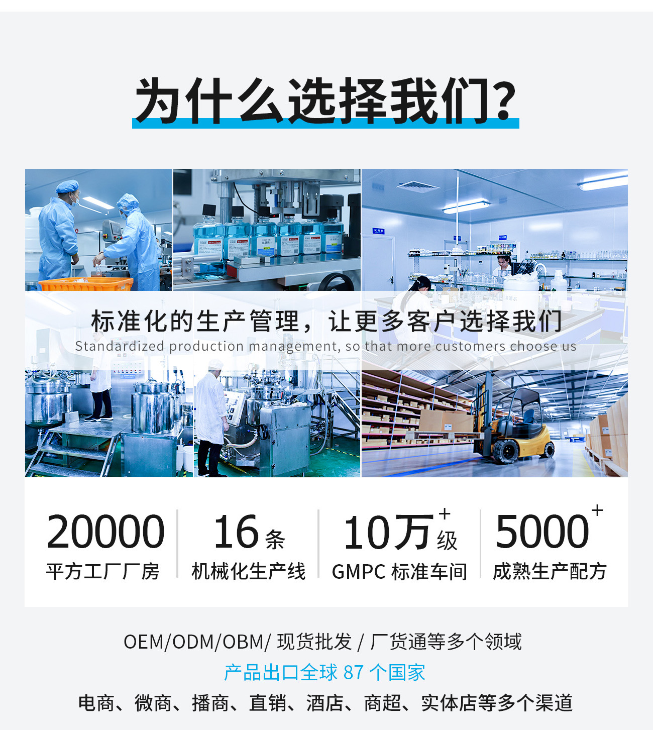 广东艾慕生物科技有限公司拥有厂房20000多平方米,旗下有广州市一龙化妆品有限公司和广州市海诗生物科技有限公司,是一家集化妆品研发、生产、销售综合性公司,交通便利,座落在风景优美的白云山脚下,离白云机场约30分钟路程,通过了ISO9001 、GMPC,美国FDA 认证,为阿里巴巴国际站多年金牌会员,具有丰富的OEM、ODM经验,旨在打造化妆品行业OEM 加工NO.1! 公司化学技术基础雄厚,经营多年,同各原材料供应商建立了广泛的协作关系,在把握化妆品生产新潮流方面,具有独特的领先优势;在管理上禀行“客户至上,互惠互利”的管理理念,具备了良好的客户基础;拥有一支多年品牌公司经验的管理队伍和一支“狼性’销售团队,目前生产的产除销往国内,还销售美国、欧洲、中东、东南亚、非洲国家和地区,客户反应非常好,许多客户已经是多年的合作关系,公司向客户承诺:“客户至上,互惠互利”,努力为客户提供最合理的价格。