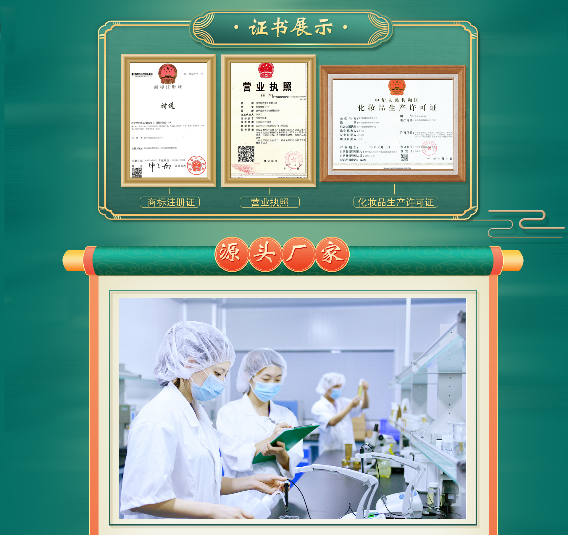 镇平时通实业有限 公司位于河南省南阳市镇平县南环路西侧,有着十几年的发展历程,本公司主要经营:化妆品类生产销售,进出口贸易;中药材种植;农作物种植销售;消毒产品类销售。我们的专业技术:按您的个性化方式要求对您的产品研发、生产、加工、包装设计专属您自己品牌的化妆品。免去您建厂、研发、生产投资风险。