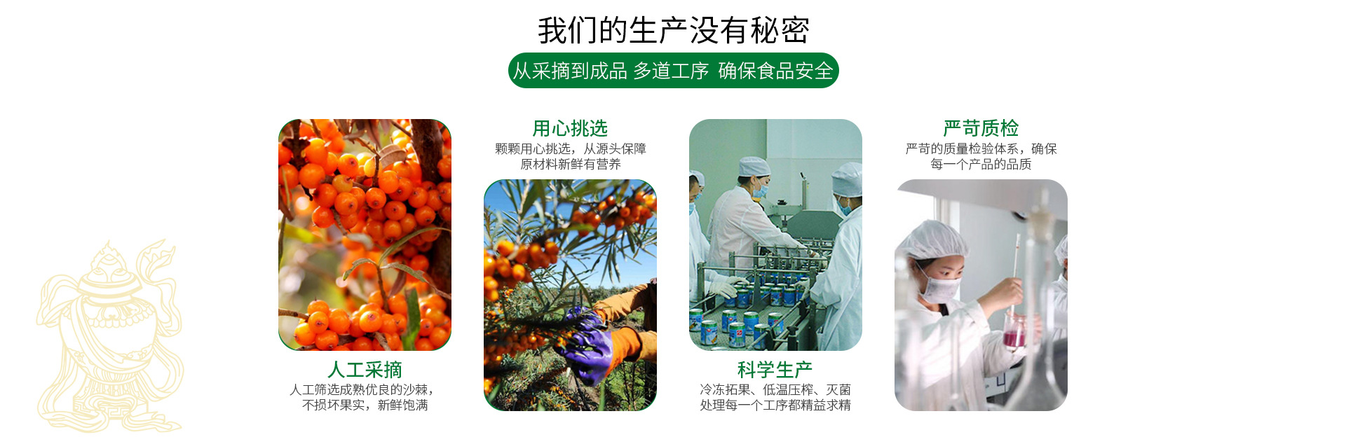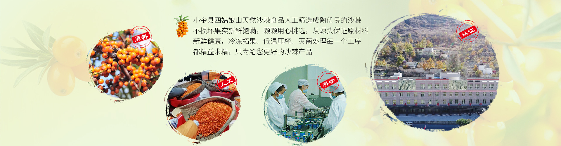 小金县四姑娘山天然沙棘食品有限公司,是四川省一家从事野生沙棘研发和生产的大型高新技术企业, 四川省阿坝州商会会长单位,四川省省级林业产业化企业,开发并生产四姑娘山牌固体饮料、拉罐饮料、无糖沙棘含片、沙棘油、玛卡系列产品等,有完整、科学的质量管理体系,公司先后与四川省中医药研究所、四川华西医大、四川农科院联合研制开发利用川西高原天然的野生沙棘资源,企业发展迅速,现拥有生产基地以及设备精良的生产线。 公司发展过程中,应用现代生物和食品加工技术,研发出具有自主知识产权的“四姑娘山牌”野生沙棘系列产品,取得了产品生产许可证认证(即原QS认证,现SC认证)、质量管理体系认证证书(IS09001:2008标准)。2018年11月,我公司产品还通过了中国质量认证中心的HACCP体系认证。 所生产的产品因其含有多种营养活性物质,有好的口感和色泽、绿色等优势,深受广大消费者的喜爱.