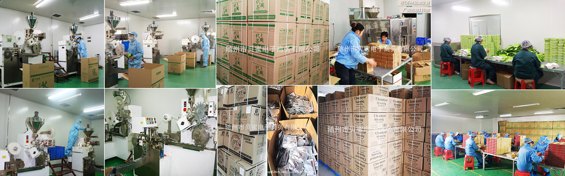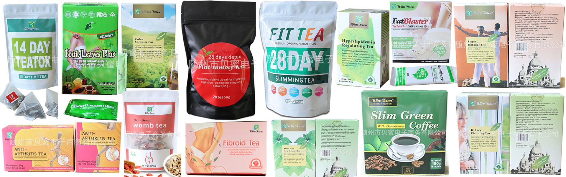随州市贝蜜电子商务有限公司主营代用茶、膳食营养代餐粉、戒烟产品、贴、膏滋、泡脚产品、日用品、外国人喜欢的养生茶等、药食同源原料、包装、五谷杂粮等产品,所有产品每月都有新批号,可以混批,也可以OEM贴牌定制加工。 部分热销现货产品如: 口臭口苦茶、红糖姜茶、银杏黄精茶、神农绛酸茶、159素食全粮饮代餐粉、赤小豆红薏仁芡实茶、红豆薏仁芡实粉、老北京足贴、瑶族巴马泡脚粉、七天戒烟香、戒烟液、浊石清茶、青钱柳茶、大肚子茶、葛根木瓜魔芋粉、木瓜葛根茶、fit tea 28 Days slimmy tea、flat tumy tea、fibroid tea、womb tea、wins town slimming green coffee healthy weight loss、香口三清茶、罗汉清润茶、老根乌密汤 随州市贝蜜电子商务有限公司优质的产品质量,广阔的市场前景,丰厚的代理待遇,强大的代理优势,让您创业投资不再难。随州市贝蜜电子商务有限公司热诚欢迎各位有志之士前来实地参观和考察。