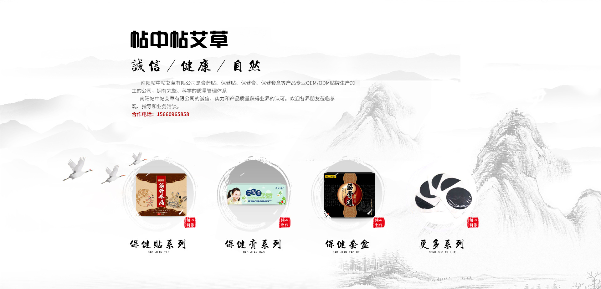 南阳帖中帖艾草有限公司是膏药贴、保健贴、OEM、ODM等产品专业生产加工的公司,拥有完整、科学的质量管理体系。南阳帖中帖艾草有限公司的诚信、实力和产品质量获得业界的认可。欢迎各界朋友莅临参观、指导和业务洽谈。