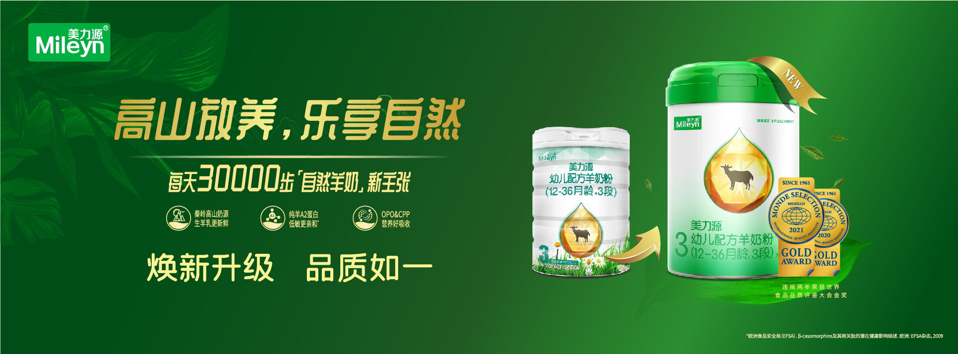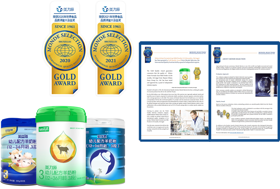 美力源乳业集团有限公司,是从事乳制品研发、生产和销售的专业化乳品企业,创建于2008年初,地处陕西省咸阳市,拥有集奶源基地、研发中心、生产基地和销售中心为一体的产业体系,并打造了婴幼儿配方羊奶粉、儿童奶粉、成人羊奶粉生命全阶段营养呵护矩阵,为中国亿万家庭提供营养、健康、安全的乳制品。奶源地特别甄选北纬34°秦岭高山牧场,遵循奶山羊天性,自然放养,食秦岭百草,饮山涧泉水,所产羊奶更优质、更营养。10余年匠心,专注营养研究,秉持创新科技研发,荣获“高新技术企业”、“世界羊乳加工样板工厂”、“世界食品品质评鉴大会金奖”、“中国羊奶十大品牌”、“中国乳制品工业协会质量金奖”等奖项。