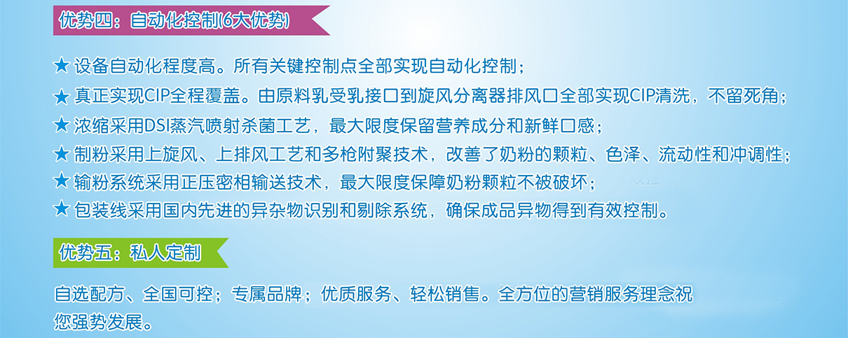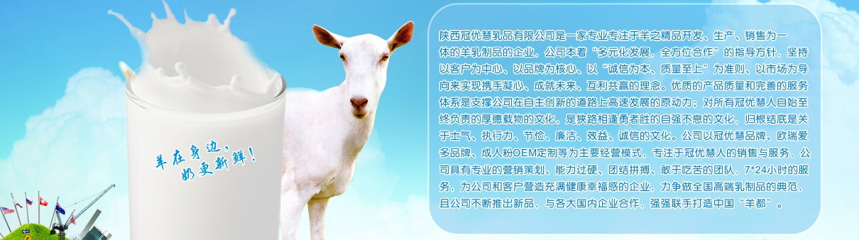 陕西冠优慧乳品有限公司是一家专业专注于羊之精品开发、生产、销售为一体的羊乳制品、用品的企业,公司本着“多元化发展,全方位合作”的指导方针,坚持以客户为中心、以品牌为核心、以市场为导向来实现携手凝心、成就未来、互利共赢的理念。公司以冠优慧、跪母恩羊奶粉为全国连锁加盟、爱诺萌宝婴童洗护母婴渠道、羊奶成人粉OEM定制等为主要经营模式,专注于冠优慧品牌的销售与服务,公司具有专业的营销策划、能力过硬、团结拼搏、敢于吃苦的团队,保姆式服务,以“诚信为本、质量至上”为准则,力争做全国高端食品、用品的典范,打造充满健康幸福感的羊奶、母婴渠道连锁企业,公司计划在3年时间内,将“冠优慧”“跪母恩”“爱诺萌宝”等品牌全国遍地开花,且公司不断推出新单品,与各大国内企业合作,强强联手打造中国“羊都”。冠优慧企业品牌由来:***品牌、优秀企业、智慧的选择。公司多年来一直秉承“扎根品质、源头***”的经营原则,在“食品、用品源头标准化”方面始终坚持精耕细作,从源头到成品层层经过质检人员的严格把关,生产出安全、营养、健康、放心的食品、用品,博得了消费者的持续信赖。优质的产品质量和完善的服务体系是支撑公司在自主创新的道路上高速发展的原动力;伟大的产业源自做自己的品牌和开发新的品牌,品牌是一个产品推广的核心,没有品牌,这个产品就失去了生命力和延续性。对所有冠优慧人自始至终负责的厚德载物的文化,是狭路相逢勇者胜的自强不息的文化,归根结底是关于士气、执行力、节俭、廉洁、效益、诚信的文化。业精一分汗千滴,爱心一颗花万朵。发展的路途总是充满艰辛与挑战,可是正是对于冠优慧产业的激情和热爱将让冠优慧这个蓄势待发的企业有着朝阳般的明天!路漫漫其修远兮,冠优慧人将不遗余力上下而求索!今天的羊奶粉、洗护用品等市场将不同于以往,因为冠优慧企业来了,这个有着蓬勃发展的企业必将为中国的健康产业事业增添新鲜血液。让我们拭目以待,这支锋利的剑如何划过夜空,展现她***的***魅力,让我们的民族品牌享誉各界,让我们的民族企业重拾信心、大放光彩!我们的企业宗旨:引领健康产业,倾力打造一个让中国人骄傲放心的羊乳制品、用品的民族品牌我们的企业使命:幸福冠优慧 健康中国人我们的企业文化:良心做人 诚信立企 质量至上!同一个冠优慧 同一份事业梦。