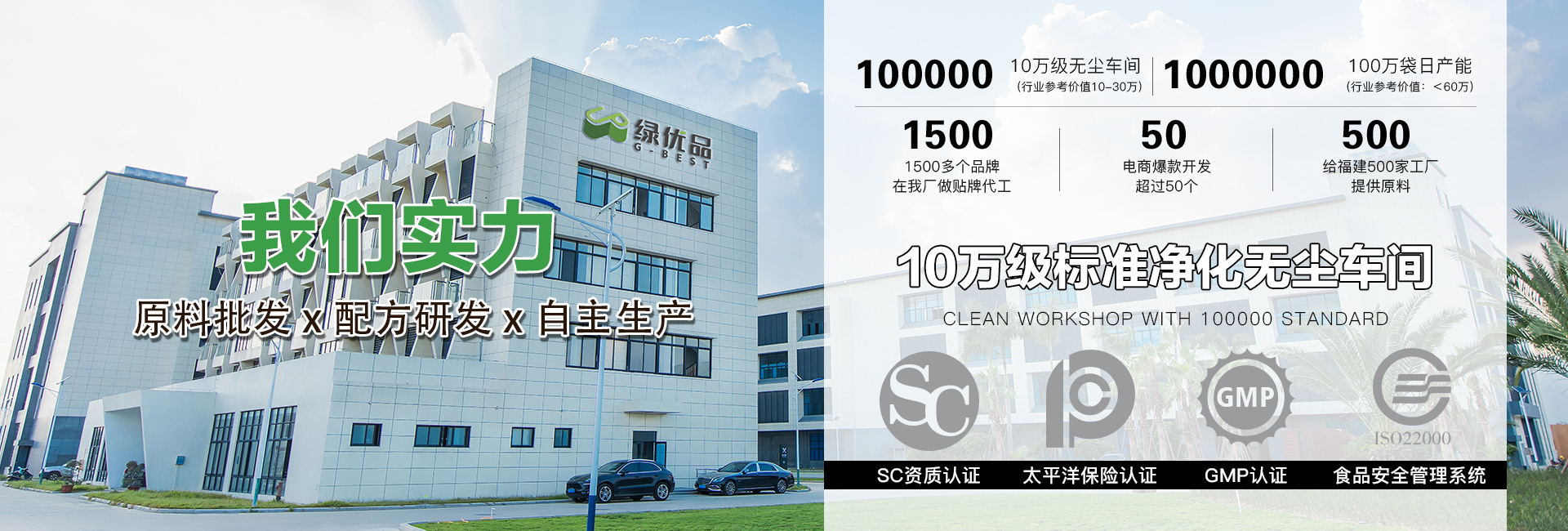 绿优品(福建)实业有限公司,是一家专注于农业产业化和生命健康产业的现代化科技型企业。 具有深厚的生物学及医学科研背景,致力于酵素产品的研发,传播真正健康的生活理念。历经二十余年稳步发展,掌握多项现代生物科技前沿技术,整合酵素产业链资源,进行农业综合开发及农产品深加工项目,打造农业产业链及生物科技一体化平台。身心力行“体内健康环保”,为中国消费者提供全品类的高品质的安全性食品,致力改善中国人的健康及提高生活品质。 公司先后自主研发了纤体梅,海藻冻、益生菌/元、蛋白肽等十几个品牌系列,独家拥有梅子发明专利。产品远销美国、日本、韩国、香港、欧洲等发达国家和地区。目前公司在台湾、厦门、漳州、韩国均设有工厂,为全球客户提供一站式的ODM、OEM等的研产销服。