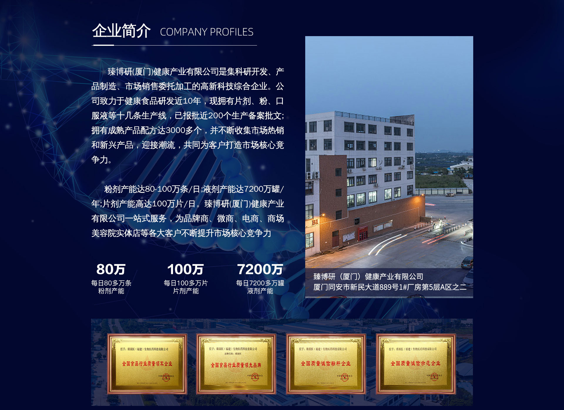 臻博研(厦门)健康产业有限公司是酵素原液、酵素粉、胶原蛋白口服液、代餐粉、代餐奶昔、代餐球、酵素原料、益生菌等产品专业生产加工的公司,拥有完整、科学的质量管理体系。臻博研(厦门)健康产业有限公司的诚信、实力和产品质量获得业界的认可。欢迎各界朋友莅临参观、指导和业务洽谈。