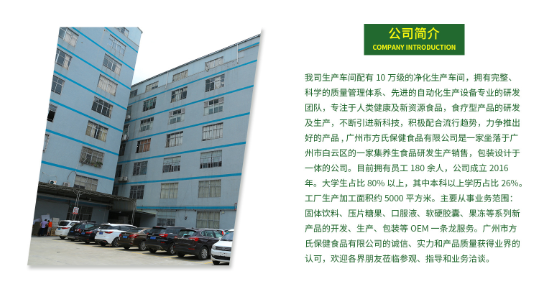 广州市方氏保健食品有限公司是保健品、原料等产品专业生产加工的公司,拥有完整、科学的质量管理体系。广州市三神医生物科技有限公司的诚信、实力和产品质量获得业界的认可。欢迎各界朋友莅临参观、指导和业务洽谈。
