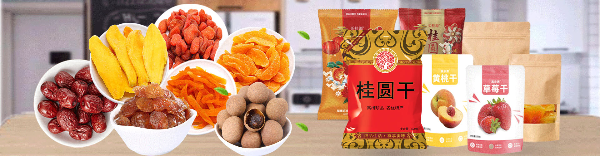 公司主营:桂圆干 桂圆肉 芒果干 黄桃干 草莓干 木瓜干 果蔬脆 五谷等产品