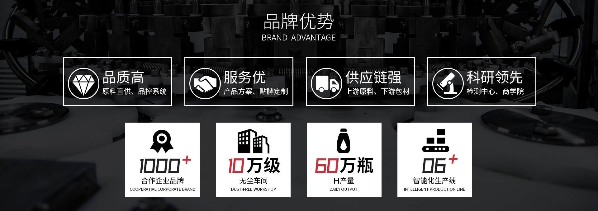 福建省善研高健食品有限责任公司(以下称善研高健),是从事燕窝和燕窝衍生产品代加工的国家高新技术企业。以“品质高、服务优、科研领先、供应链强”为核心价值理念,致力于成为燕窝产业价值领创者。 自创立以来,善研高健从原料、研发、生产、服务等多层面发力,逐步打造出燕窝和燕窝衍生产品代加工的全产业链优势,致力于为合作伙伴提供更具价值的产品及服务。 在马来西亚和印尼,善研高健建立了标准的原料直供和优选系统,从产业链前端保障了燕窝原料的品质安全、价格稳定和产量充足;在漳州,善研高健拥有面积2万平米、固定员工超500人、日产能达50万瓶的现代化生产基地;按照GMP标准建立的现代化生产车间,拥有德国、意大利引进的自动化生产线和生产设备;同时打通下游包材、辅材供应链,确保满足合作伙伴的多样化定制需求,让代工更省心。