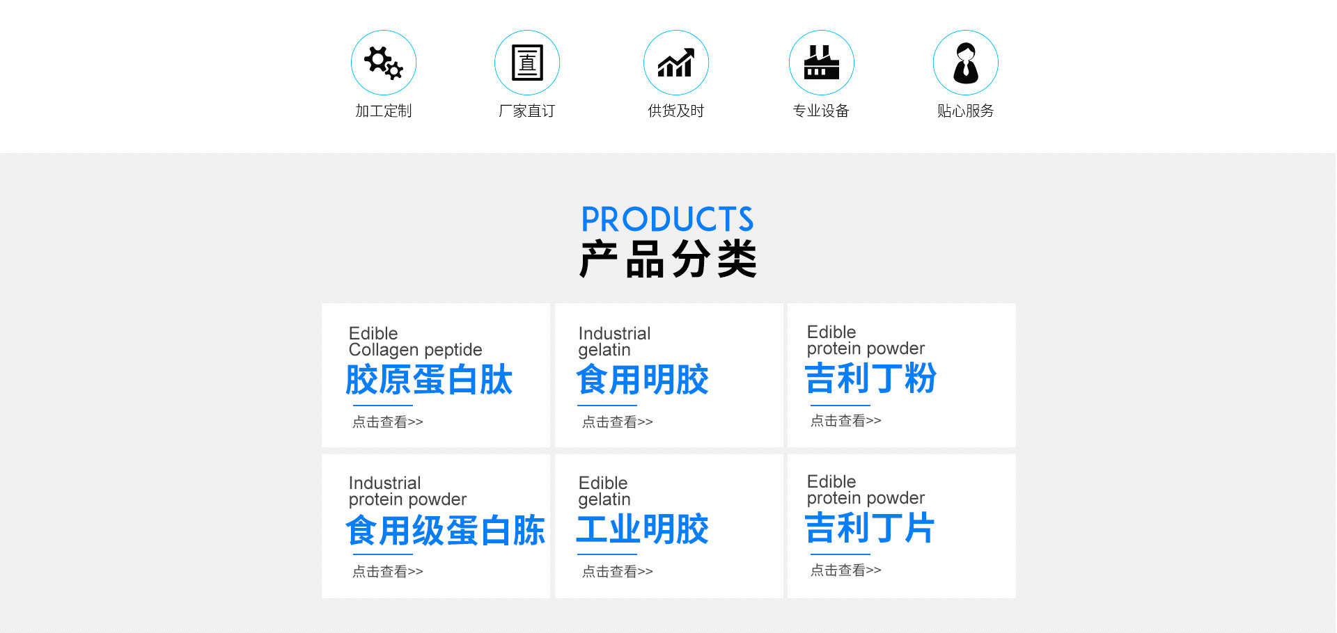 亿威隆(厦门)生物科技有限公司是集生产销售明胶、食用明胶、胶原蛋白粉、工业蛋白粉、蛋白胨,吉利丁片。等产品专业生产和加工的厂家,拥有完整、科学的质量管理体系。于2003年筹建,2005年正式建成。注册资金500万元,占地面积5000平方米,现有职工158人,其中高工10人,中级以上技术员35人。