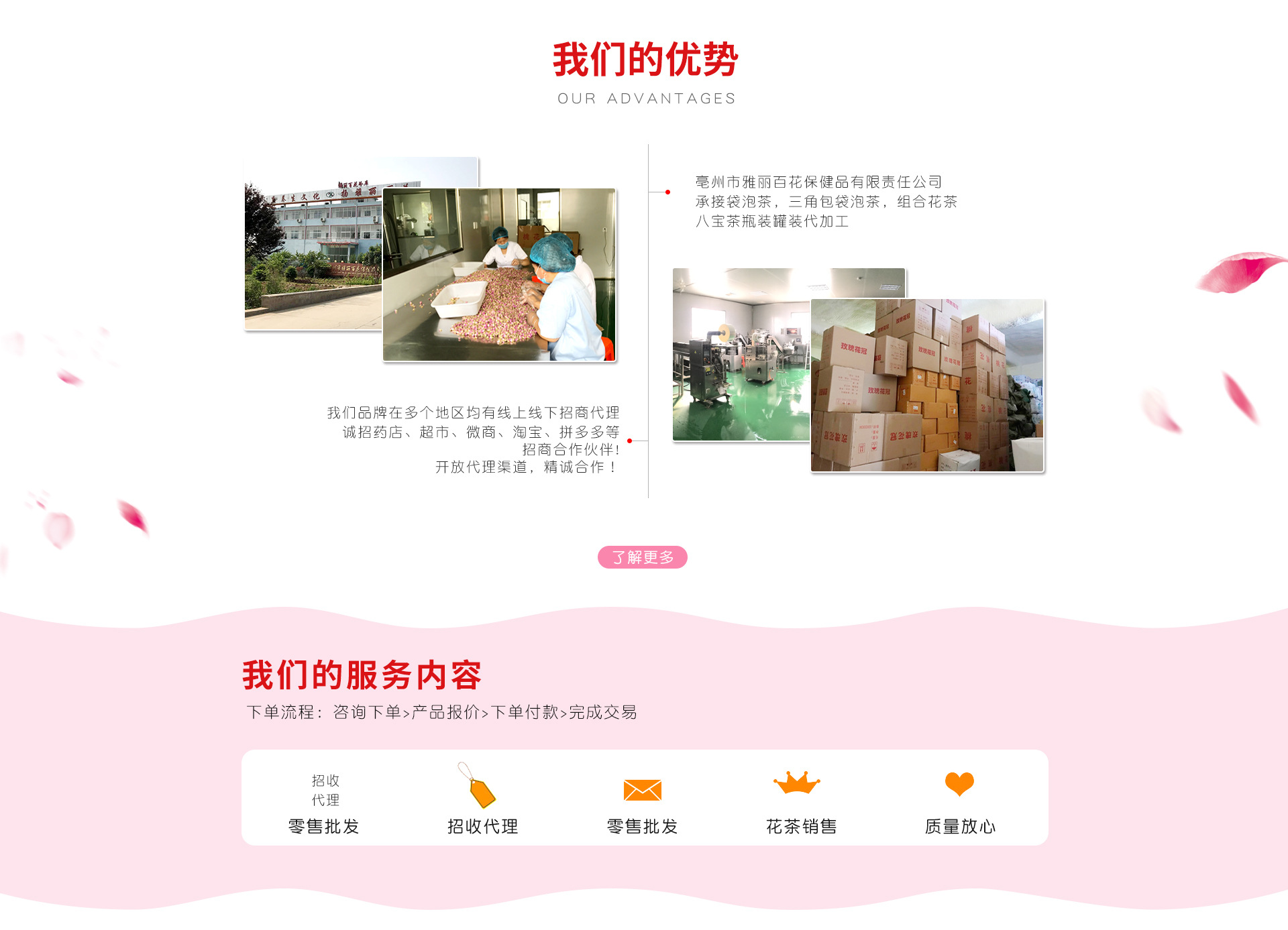 雅丽百花:500种花草茶,面向全国直销批发团购,OEM代加工!花茶品种有:紫玫瑰、粉玫瑰、茉莉、百合花片、百合花朵、大麦茶、洋甘菊、紫罗兰、金莲花、熏衣草、桃花、三七花、人参花、夜来香、苹果花、千里香、木瓜丝、菩提叶、菩提子、康乃馨、竹叶青、枸杞、甘草、板蓝根、黄芪、灵芝、贡菊、金贡菊、金盏菊、荷叶、荷花、麦冬、苦丁茶、柠檬草、马鞭草、陈皮、决明子、月季、杜鹃花、芍药花、牡丹花、罗布麻、七彩菊、野生苦丁茶、柚子花、凌霄花、葛花、栀子花、栀子、金缨子、银杏茶、玉兰花、野菊花、米菊、木槿花、勿忘我、金银花、番泻叶、天山雪莲茶、进口千叶玫瑰、进口熏衣草、进口迷迭香、进口洋甘菊、迷迭香、厚朴花、芙蓉花、芦荟、香金桂、桂花、人参化籽、槐花、大枣、万寿菊、杭白菊、太阳菊、甜菊叶、千日红、红巧梅、雪中情、薄荷、玉蝴蝶、康仙花、柠檬片、红雪茶、白雪茶、绞股兰、野生绞股兰、特级野生龙须绞股兰、辛夷花、山查