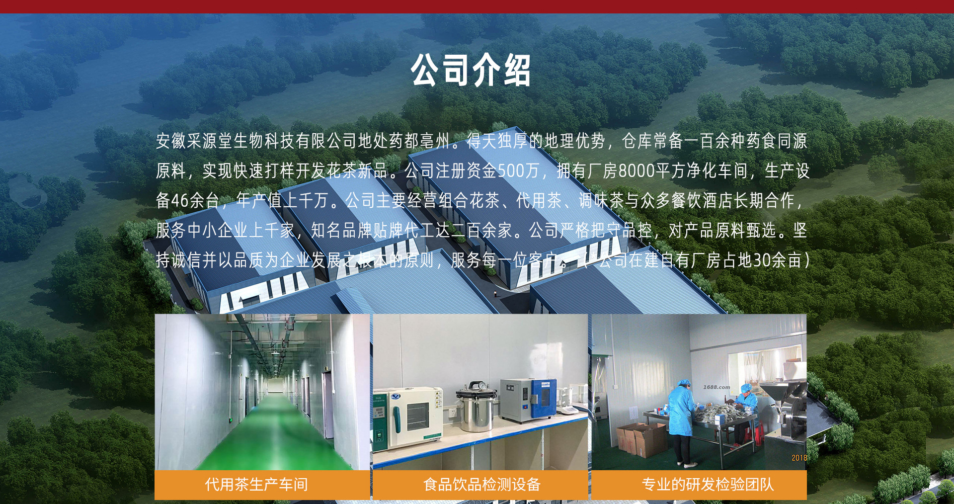 安徽采源堂生物科技有限公司是花草茶、花果茶、代泡茶、杂粮、粉等产品专业生产加工的公司,拥有完整、科学的质量管理体系。安徽采源堂生物科技有限公司的诚信、实力和产品质量获得业界的认可。欢迎各界朋友莅临参观、指导和业务洽谈。