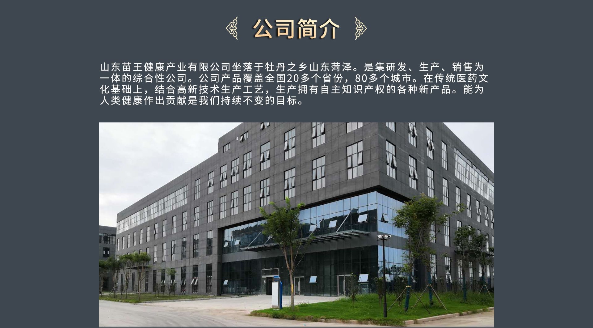 山东苗王健康产业有限公司坐落于牡丹之乡山东菏泽。是集研发、生产、销售为一体的综合性公司。公司产品覆盖全国20多个省份,80多个城市。在传统医药文化基础上,结合高新技术生产工艺,生产拥有自主知识产权的各种新产品。能为人类健康作出贡献是我们持续不变的目标。
