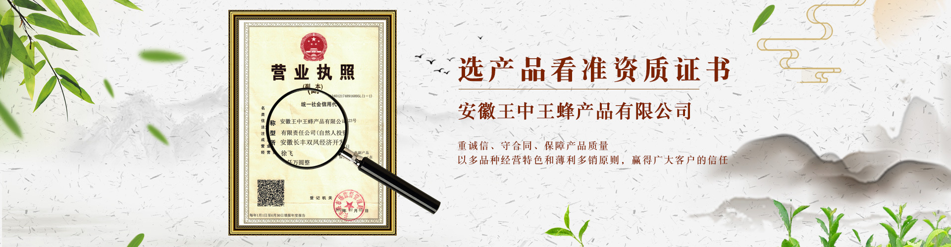 安徽王中王蜂产品有限公司是蜂蜜等产品专业生产加工的公司,拥有科学的质量管理体系。安徽王中王蜂产品有限公司的诚信、实力和产品质量获得业界的认可。欢迎各界朋友莅临参观、指导和业务洽谈。 王中王公司始终坚持“诚信合作,双赢共生”的经营理念,坚持以市场为导向研发新产品。在生产过程中严格执行国家食品卫生标准,并获得了国家颁发的《全国工业产品生产许可证》(QS认证)体系。   王中王公司在社会各界的支持下,全体员工共同努力下,在取得了良好经济效益的同时也取得了社会效益。公司在二次创业之际,引进技术设备和管理经验;健康发展之伟业,把产品做精做细,市场做深做透、企业做大做强,为振兴民族企业做出贡献。