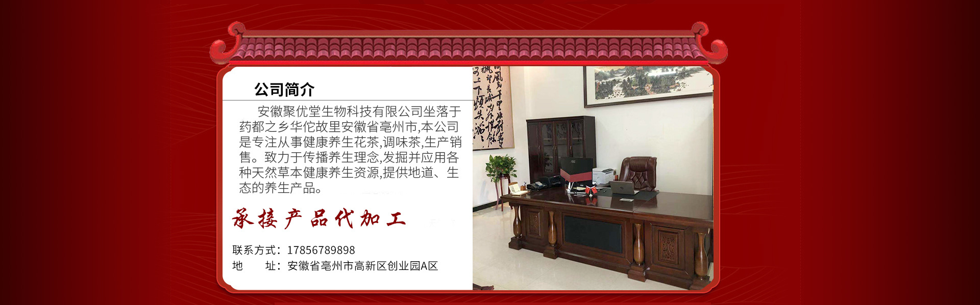 安徽聚优堂生物科技有限公司是花草茶等产品专业生产加工的公司,拥有完整、科学的质量管理体系。安徽聚优堂生物科技有限公司的诚信、实力和产品质量获得业界的认可。欢迎各界朋友莅临参观、指导和业务洽谈。