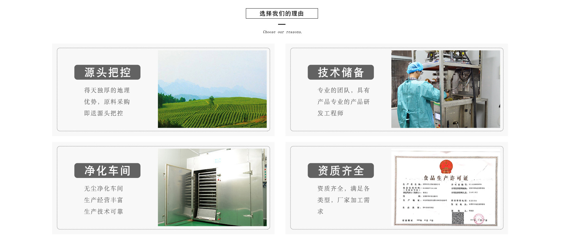 安国市忠义药材有限公司成立于2005年,坐落于负有千年药都之称的安国市,是一家以养生为主导,集设计、开发、生产、销售于一体的公司。我们的地理环境优越、交通运输便利、信息通畅。我公司秉承“顾客至上,锐意进取”的经营理念,坚持“顾客第一”的原则为广大客户提供优质的服务。我们有一条先进的立体三角袋花茶的生产流水线和一条粉剂加工灌装流水线,以及专业的队伍,严谨的管理,先进的设备,着力打造”花辰月夕”品牌花茶。 我公司主要经营茶制品及代用茶、中药材等,已经通过食品的QS认证,拥有完整、科学的质量生产管理体系。“讲信誉,讲质量,讲服务”是我们一贯的经营宗旨,生产加工的花茶已普遍赢得消费者的信赖和好评。我公司经过坚持不懈的努力,在原材料供应、新产品开发、花茶代加工三大领域,已经成功开拓了一片前景甚好的市场。 我公司热忱希望与您携手,做好绿色健康产业,共创美好未来!