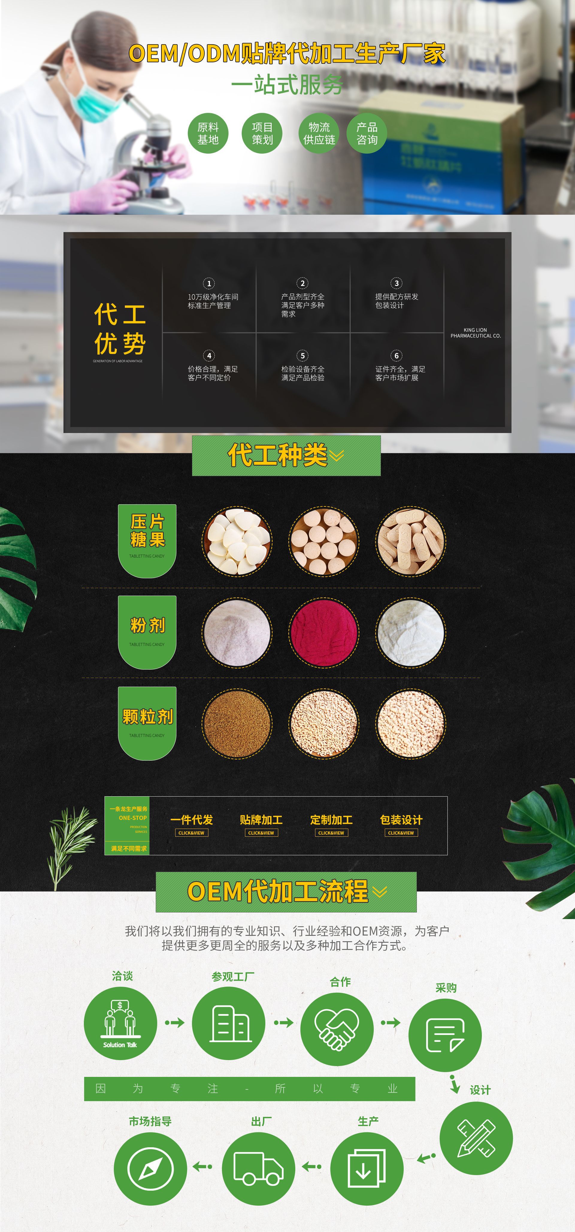 君狮生物药业(厦门)有限公司,我司是一家专业从事健康食品,集研发、生产、销售于一体的高新技术型企业。 公司坐落于中国南海之滨,被国际誉为海上花园的宝岛厦门,厦门作为海西经济中心、文化交流中心、中国对外交流门户,公司充分利用有利的地域平台与国际接轨,在产业技术信息得到空前的提升,现公司与国际多个健康研究组织密切合作,着力根据亚洲特殊地理气候条件下人体体质开发适合亚洲人的健康产品,其产品细化到各个年龄阶段的需求。 我司拥有大型食品工业生产基地,SC生产许可认证,全程根据国家相关技术严格把关。原料的引进做到精挑细选。从源头抓,确保公司产品的纯正如一。 我们专门设置了OEM板块,其产品剂型含概:口服饮品、压片糖果、固体饮料等诸多剂型。生产工艺先进、流程科学,为广大客户提供专项包装、定量生产等优质代工服务。 公司一直秉承“质量为立业之本,信誉为企业之根”与广大经销商倾