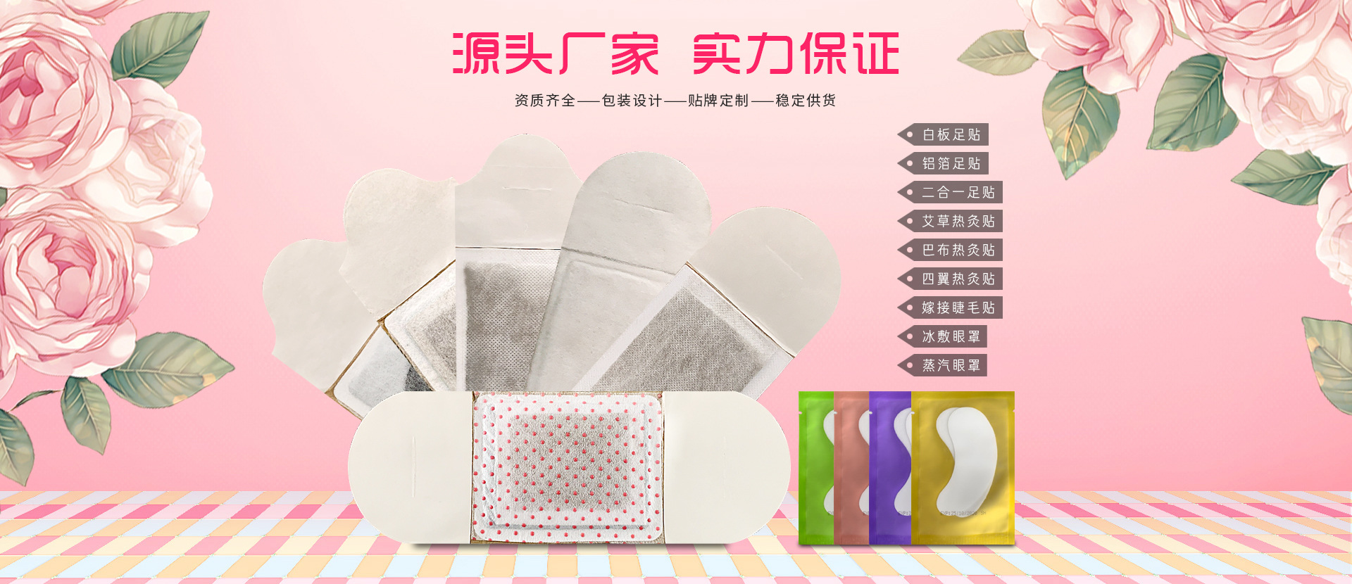 河北言润保健用品公司是眼贴、热灸、足贴、巴布贴、冰贴、足浴粉、空贴、暖贴、凝胶眼贴、暖宝宝、戒烟贴、驱蚊贴、手膜、足膜、嫁接眼睫毛等产品专业生产加工的公司,拥有完整、科学的质量管理体系。河北言润保健用品公司的诚信、实力和产品质量获得业界的认可。欢迎各界朋友莅临参观、指导和业务洽谈。