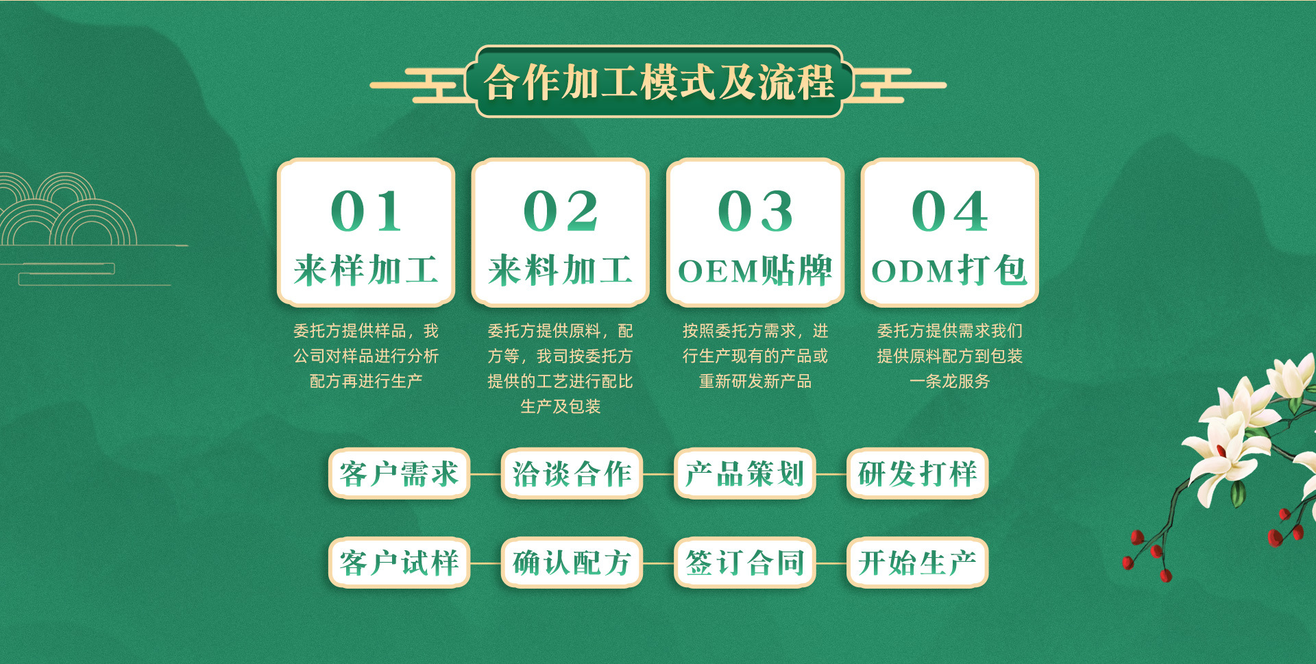 广州韩英生物科技有限公司是一家综合性健康食品及生物技术服务企业,主营保健食品、营养食品、新资源食品生产加工OEM、ODM等业务。广州韩英生物科技有限公司,秉承关爱生命,以人为本的宗旨,致力于全民健康工程,倡导“品质为本,客户至上”的经营理念;科技领先,追求卓越的企业宗旨,以专业生产、销售及全程健康服务为一体,打造健康营养保健品。 可生产加工固体饮料、压片糖果、袋泡茶、果冻、膏滋、口服液、软糖、代餐饼、口香糖、等产品。公司提供原材料采购、研发生产、标准申报、模具多样、设计包装等。