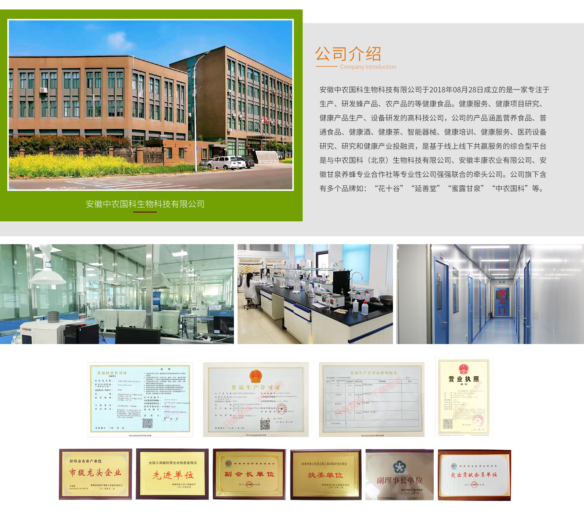 安徽中农国科生物科技有限公司的企业创始人、首席执行官兼CEO周海江先生于2018年08月28日成立的是一家专注于生产、研发蜂产品、农产品的等健康食品。健康服务、健康项目研发、健康产品生产设备研发的高科技公司,公司的产品涵盖营养食品、普通食品、保健食品、健康酒、健康茶、健康医疗、智能器械、健康培训、健康服务、医药设备研究、保健品开发、研究和健康产业投融资,是基于线上线下共赢服务的综合型平台。是与中农国科(北京)生物科技有限公司、安徽丰康农业有限公司、安徽甘泉养蜂专业合作社等专业性公司强强联合的牵头公司