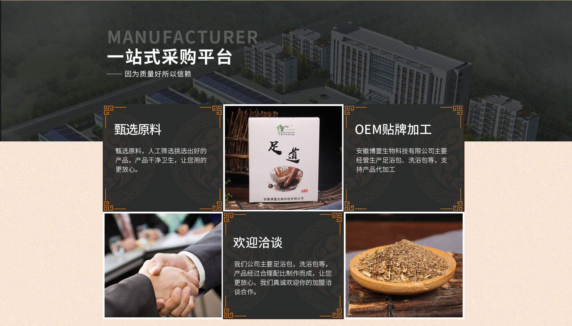安徽博萱生物科技有限公司坐落在、华佗故里、中华药都的安徽亳州。公司下属分公司有亳州市广义农副产品购销有限公司、亳州市谯城区佳农中药材种植合作社,本公司本着自供自给全产业链模式、为您提供更为稳定、质量可控的优质合格产品。 本公司生产范围:抗(抑)菌制剂(固体、液体、净化)及艾制品的生产销售,所涉及的产品有、足浴包、药浴包、藏红花泡浴抑菌液、艾灸液、足浴颗粒、足浴原料包、抑菌喷剂。