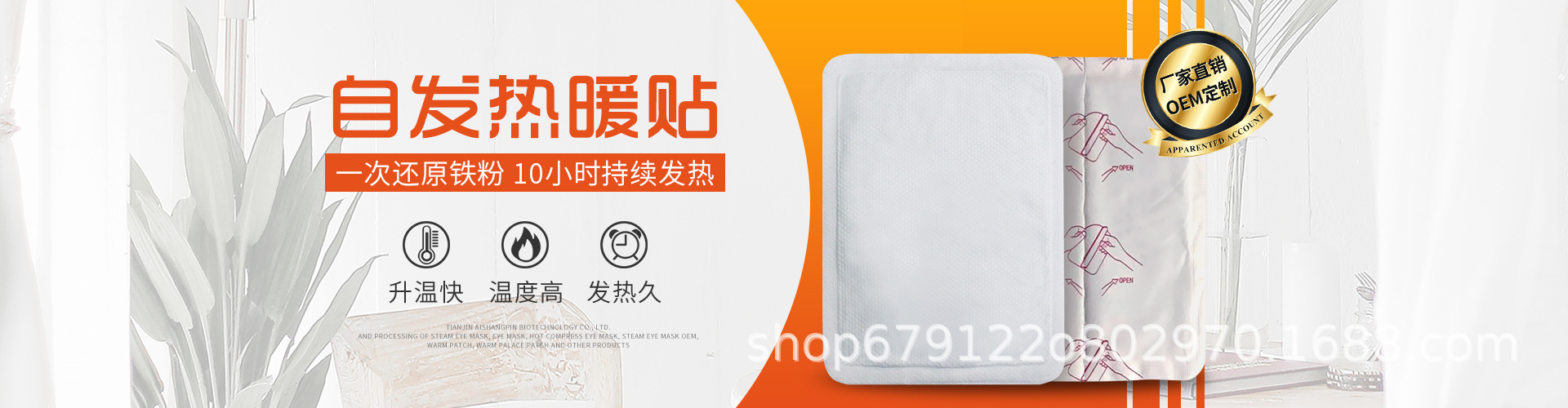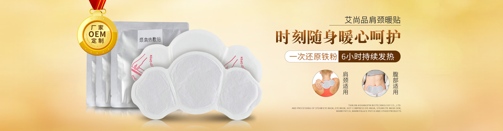 天津市艾尚品生物科技有限公司是蒸汽眼罩、眼罩、热敷眼罩、蒸汽眼罩oem、暖贴、暖宫贴等产品生产加工的公司,拥有完整、科学的质量管理体系。天津市艾尚品生物科技有限公司的诚信、实力和产品质量获得业界的认可。欢迎各界朋友莅临参观、指导和业务洽谈。