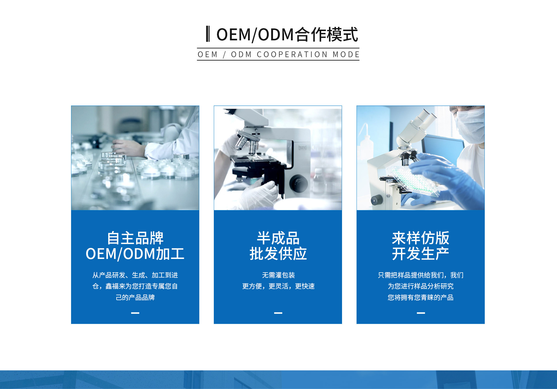 鑫福来共享工厂成立于2005年,拥有10万级GMP净化车间,用制药的理念 生产产品 ,2014年12月30日,成功挂牌广州股权交易中心 股权代码:890787),中国医药物资协会常务理事 中国保健协会理事单位 广东省健康管理发展促进会发起单位 广东省保健食品协会副会长单位 中国消费者协会(保健食品消费指引)责任承诺企业。 业务:主要从事营养健康食品 功能性保健食品和营养补充剂的研发,生产, 销售一体 。拥有300多个商标资源共享,多项发明专利 ,60多个保健品批文:如减肥,改善睡眠,美白,促进消化,降血脂,缓解体力疲劳,增强免疫力等保健品 2000多个功能食品,安神助眠类 抗糖抗衰类 调经补血类 滋补壮阳类 各种益生菌等。 专业为各大品牌公司,渠道 平台 直销,电商,微商等OEM代加工。
