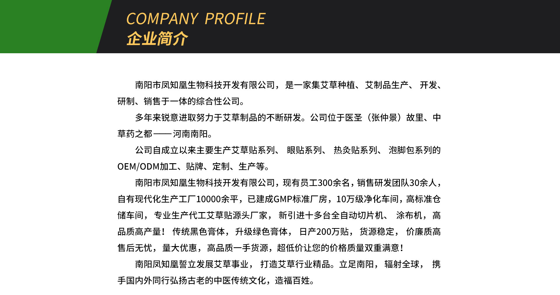 南阳凤知凰生物科技有限公司,专业生产代工艾草贴源头厂家,拥有数台最新全自动切片机,涂布机,高品质高产量!传统黑色膏体,升级绿色膏体,日产100万贴,货源稳定,价廉质高,售后无忧!量大优惠,高品质一手货源超低价,让您价格质量双重满意!可免费发样品再定制。 欢迎全国各地商家新老朋友实地来厂参观考察!
