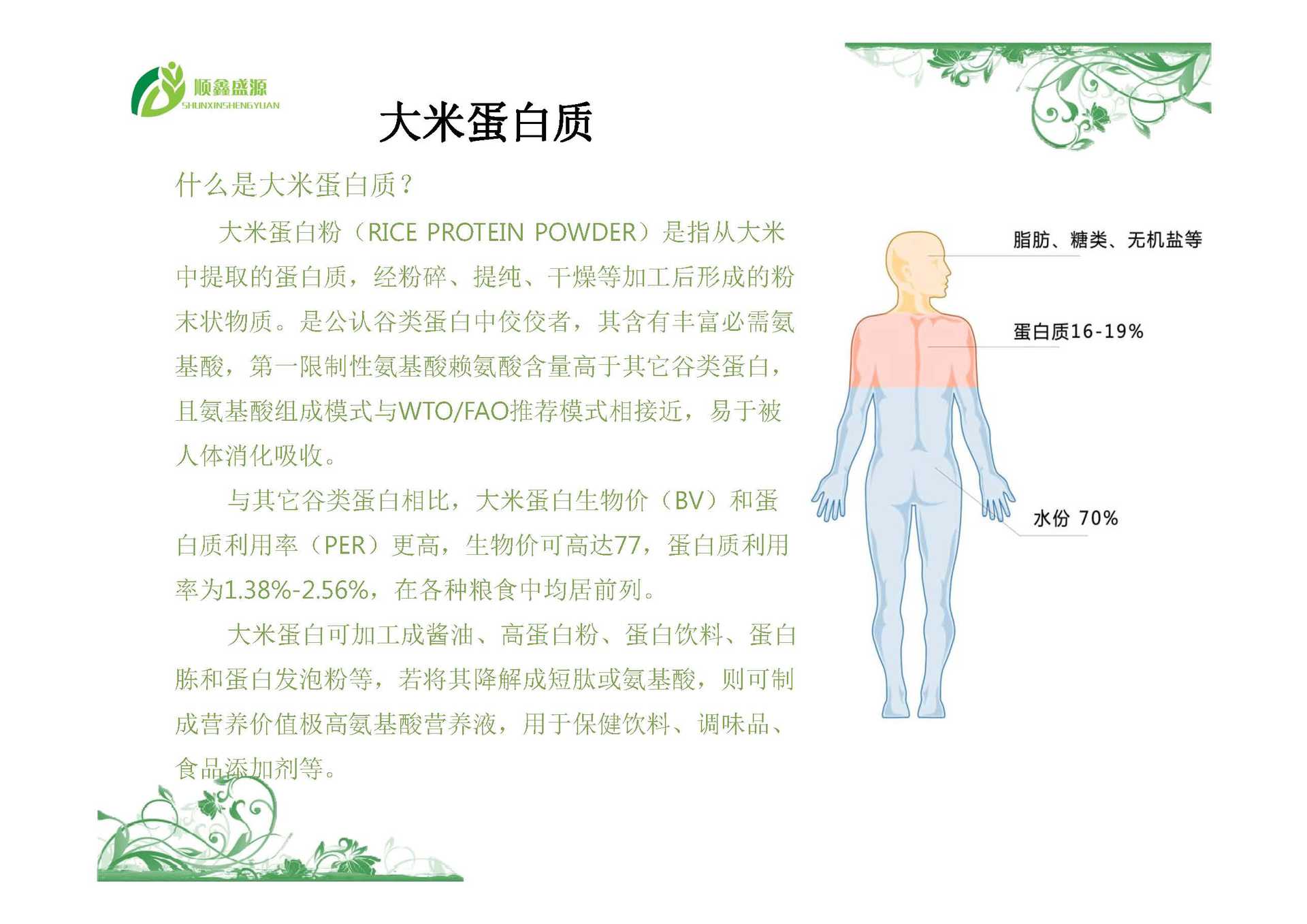 安徽顺鑫盛源生物食品有限公司成立于2014年,位于滁州市琅琊经济开发区,以优质大米为主要原料,生产经营大米蛋白粉、米乳粉、大米多肽、大米淀粉、果葡糖浆、葡萄糖浆、麦芽糖浆等系列产品,是一家集生产、科研、进出口为一体的专业公司。公司注册资金5800万元,总投资2亿元,车间、仓库、办公楼总占地面积35828平方米。年产15万吨大米淀粉糖、2万吨食用大米蛋白粉,拥有先进的生产流水线,产品广泛应用于运动营养、特膳食品、饮料、罐头、乳制品等行业。 公司实行现代化企业管理制度,具有进出口经营资格和国家出入境检验检疫局颁发的出口卫生注册证书,已通过了ISO9001,22000等国际质量体系认证,建立了完善的内部质量管理体系,凭借着先进的生产设备和生产工艺,公司不断扩大产品在国内外市场的占有率,赢得了客户的一致好评。