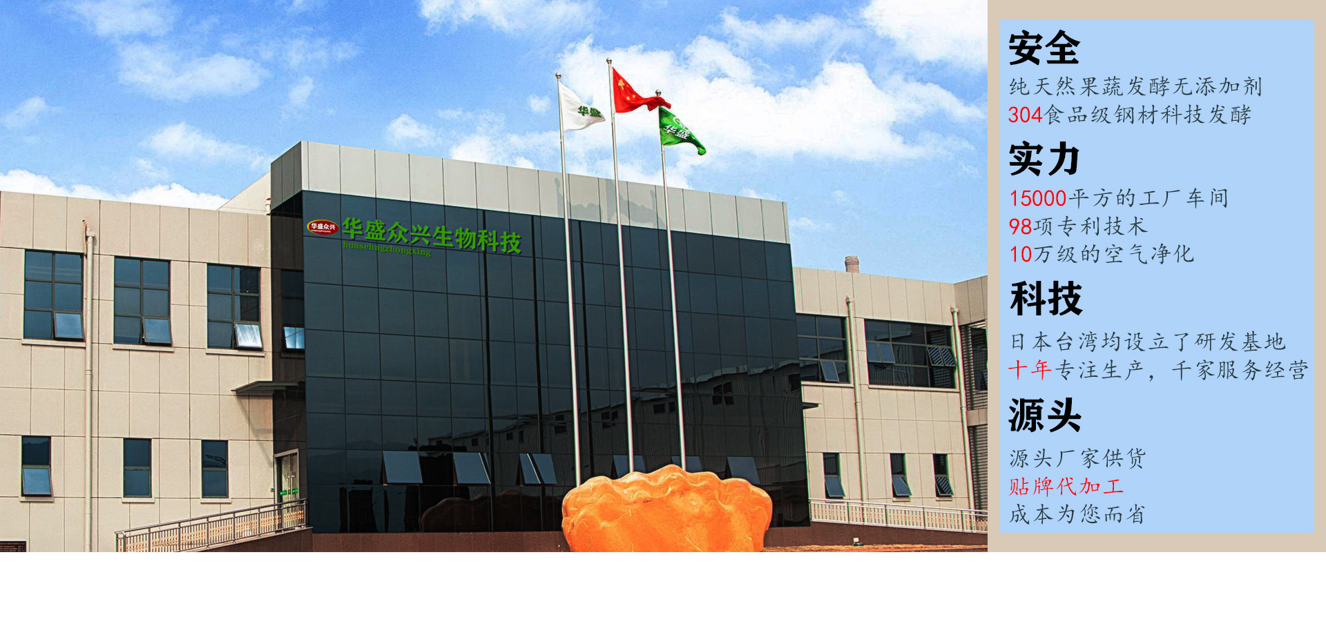 华盛众兴(厦门)生物科技有限公司是酵素果冻、酵素粉、五谷代餐粉、胶原蛋白肽、益生菌等产品专业生产加工的公司,拥有完整的质量管理体系。研发、生产、设计于一体的现代化食品企业。公司秉承服务至上,客户满意,”的企业方针,公司期待着与所有员工一道努力奋斗;公司视员工为宝贵的财富,希望员工与企业共同进步,与企业一起分享成果分担责任。 公司的精神“团结合作的精神,不断进取的态度及平等与关怀”,我们鼓励每一位员工充分发挥才干并提供机会,鼓励员工积极协作,增进相互了解,加强交流,参与每一项的改进;公司面临着日益激烈的市场竞争,需要我们不断的改进、提高劳动生产率、减少损耗、稳定地生产产品从而达到提高产品的竞争力,为参与市场竞争提供可靠的保障。欢迎指导和业务洽谈。