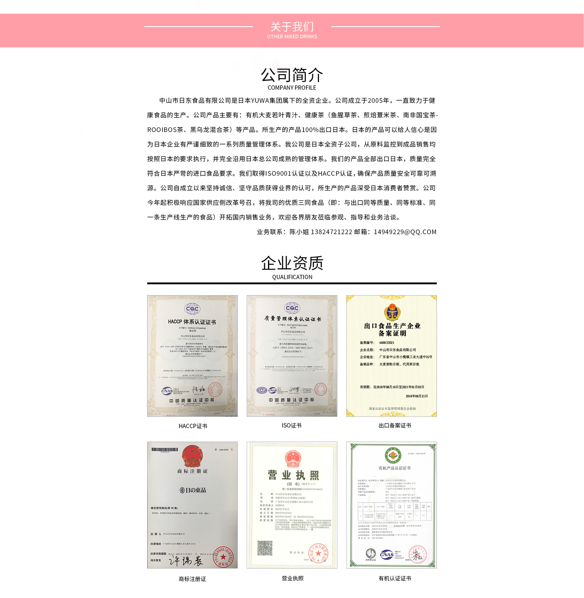 中山市日东食品有限公司是一家2005年成立的日本全资企业,专业生产各类青汁固体饮料以及日式袋泡茶包。十多年来,产品一直全部出口日本。 公司有完备的日本进口自动生产设备线,精准的质量监测设备,实施严谨规范的管理。 可为广大消费者提供高质量的自有品牌大麦若叶青汁产品,也可承接代工生产各类粉末固体饮料以及袋泡茶包业务。