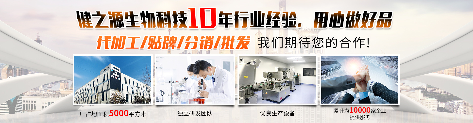 济南健之源_专注压片糖果(片剂)、固体饮料(粉剂、颗粒)、凝胶糖果(软糖、软胶囊)、袋泡茶(代用茶)、方便食品的OEM与ODM贴牌代加工,公司拥有成熟产品木瓜葛根片、酵素魔芋片、黄精牡蛎肽片、综合果蔬酵素粉、黑糖姜茶、蛋白质粉、益生菌粉、代餐粉、维生素软糖、鱼油软胶囊等配方支持贴牌代加工并能定制修改配方允许ODM全包,如有需要现货批发、零售采购请及时与我们联系。 公司研发团队长期从事科研项目并拥有十余项科研成果,在济南生命科学城兴建3000平米集研发、生产、质检、办公于一体的厂区,其中含2000平米GMP净化认证车间紫外线臭氧双重消毒,每立方米菌落总数控制在10万以下,等同于制药企业标准。自动化生产线有效提高生产效率,片剂日生产量可达800万片,凝胶糖果软胶囊日生产量可达500万粒。只要说出关于您想要的产品任何信息,我们定会给你满意的产品。